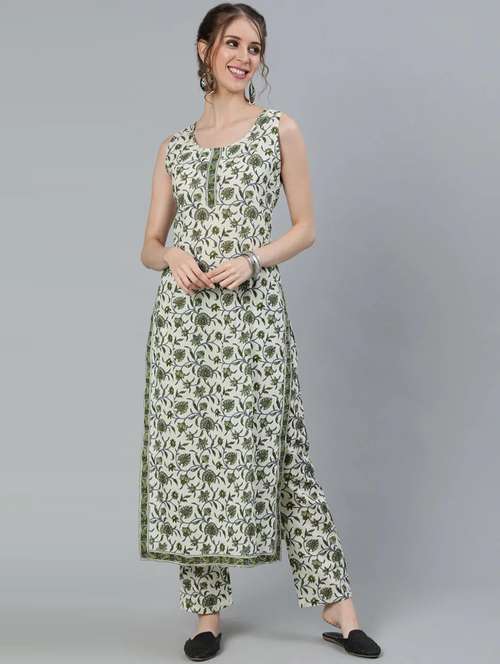 - » women sea green printed kurta pant set