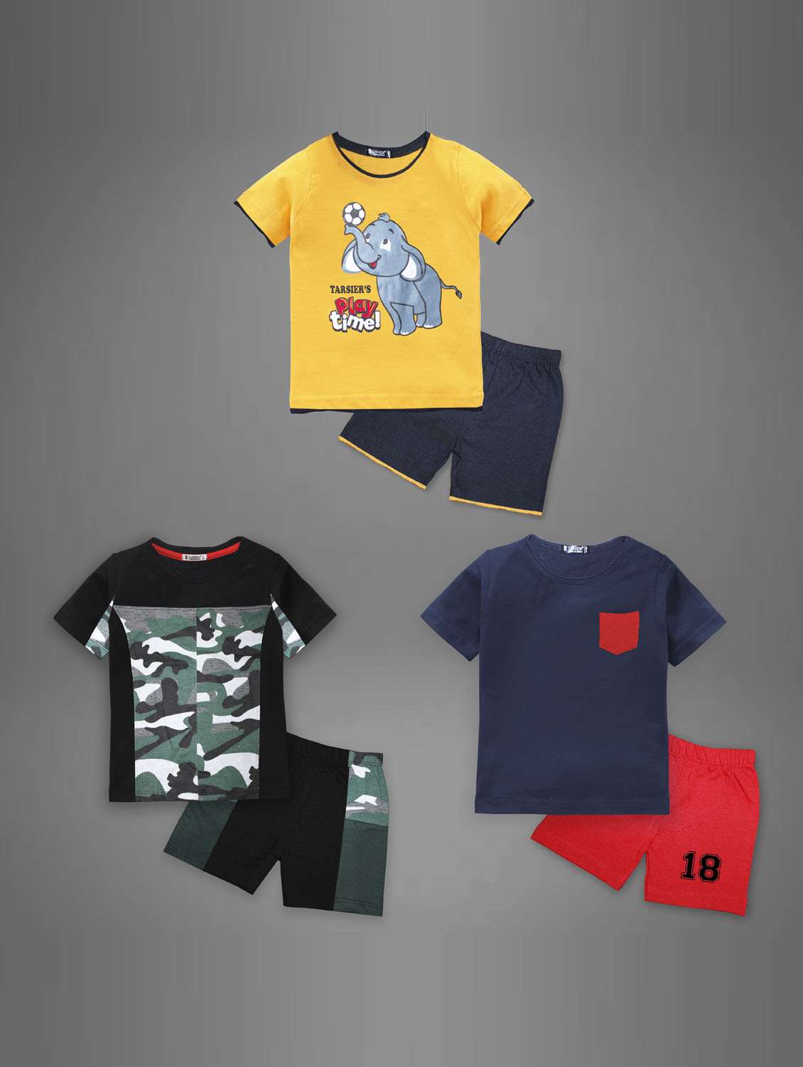 - » pack of 3 round neck t-shirts & shorts