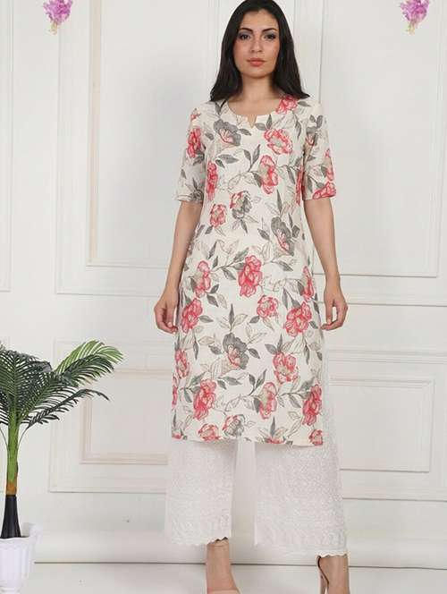 women floral printed short sleeve straight kurta - 22397460 -  Standard Image - 1 women floral printed short sleeve straight kurta - 22397460 -  Zoom Image - 1