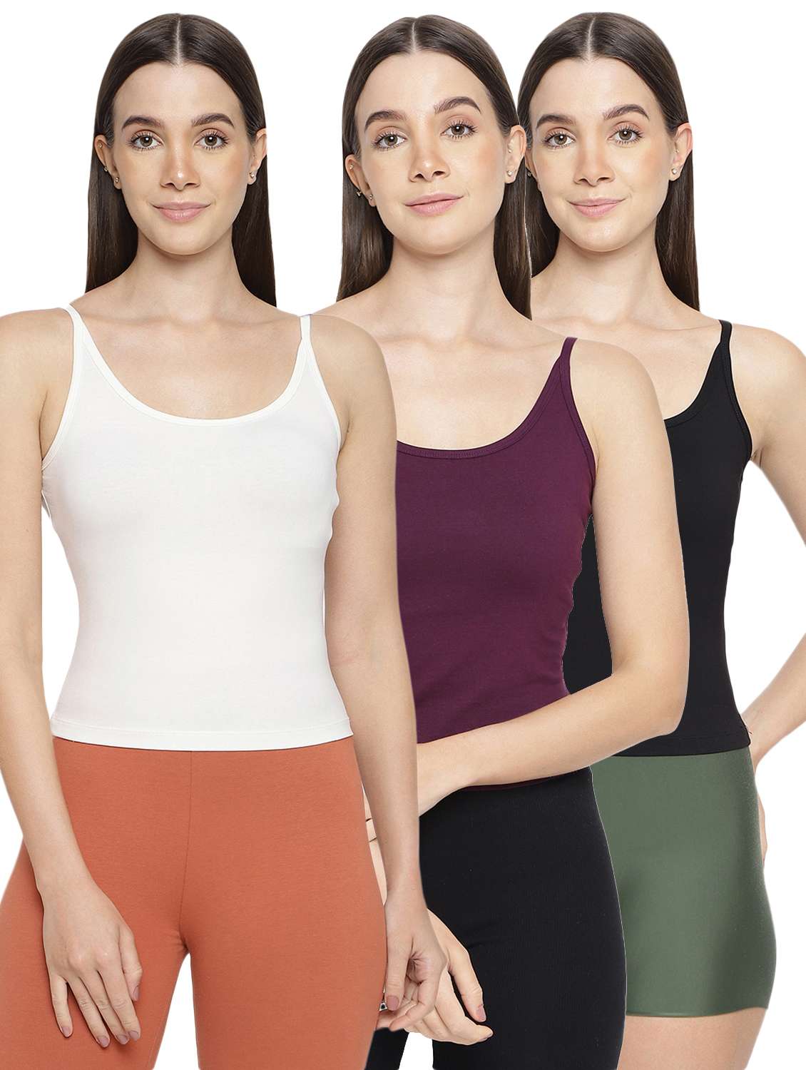 women pack of 3 solid camisoles