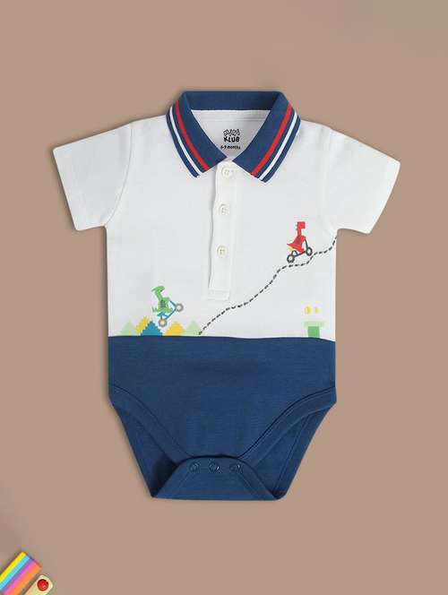 • Onesies and rompers are famous among the infants because it is comfortable and looks cute at the same time. Get one for your little one from MINI KLUB in white colour.