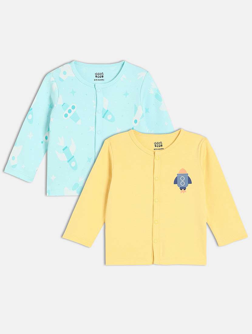 infant pack of 2 printed long sleeve front-open t-shirt