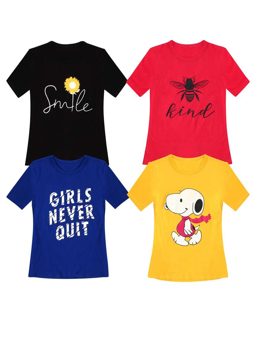 girls pack of 4 printed tees
