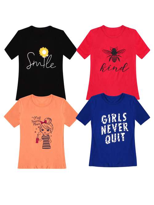 girls pack of 4 printed tees