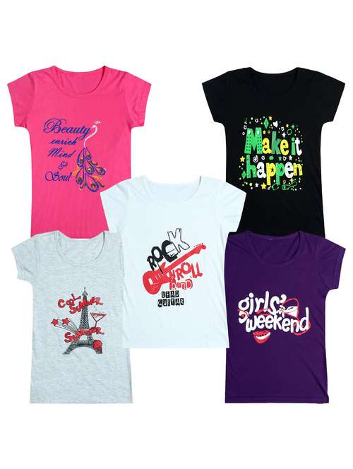 pack of 5 round neck printed tees