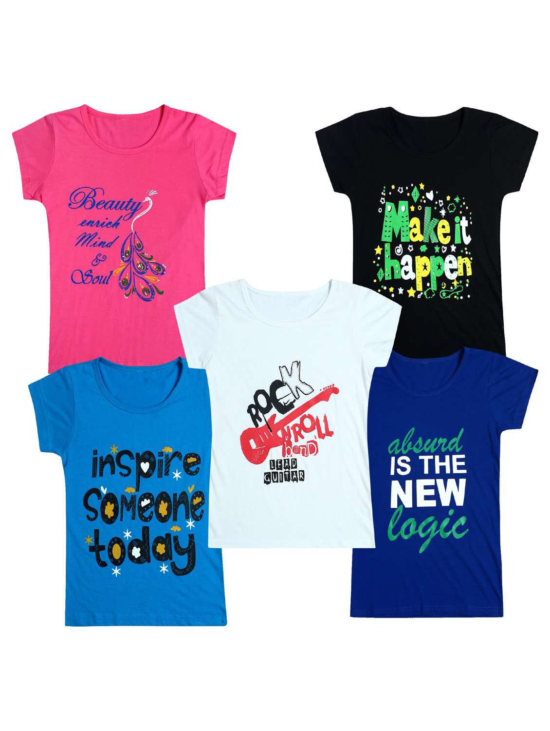pack of 5 round neck printed tees - 20100933 - Very Small Image - 1
