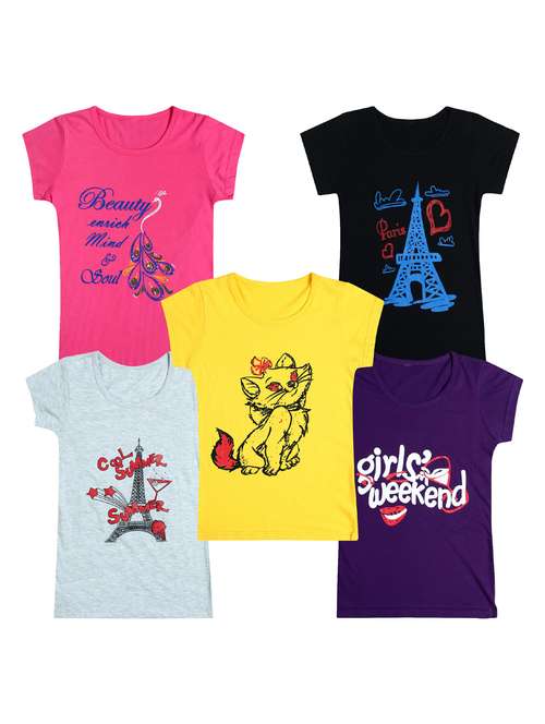 pack of 5 round neck printed tees