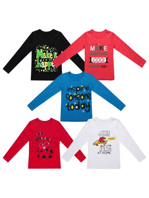 pack of 5 round neck printed tees - 20101530 - Very Small Image - 1