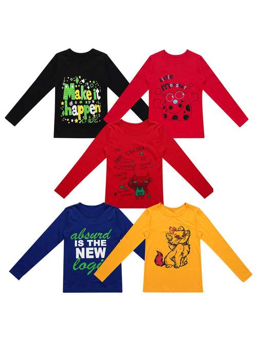 pack of 5 round neck printed tees - 20101575 - Very Small Image - 1