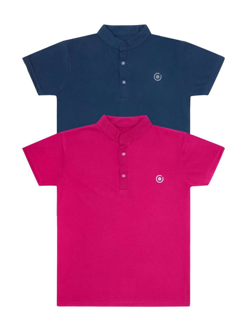 boys pack of 2 plain mandarin neck short sleeve t-shirts