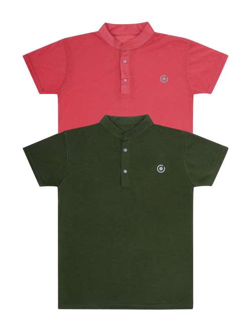 boys pack of 2 plain mandarin neck short sleeve t-shirts