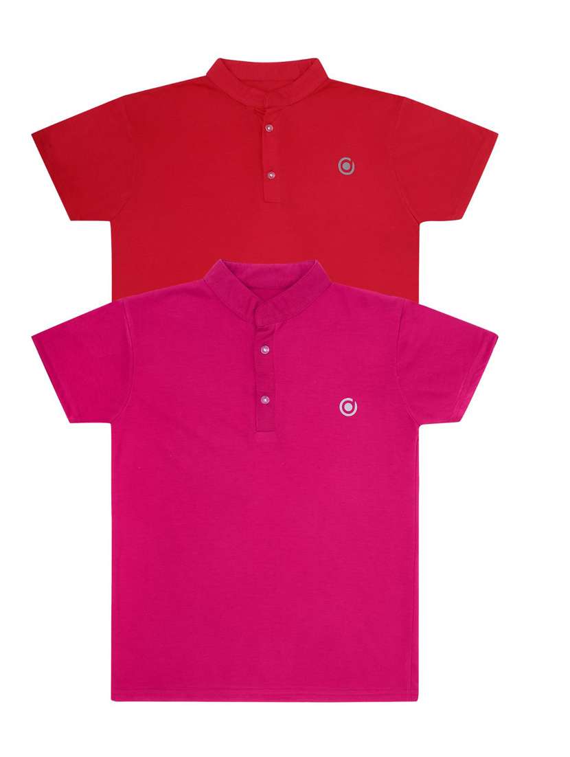 boys pack of 2 plain mandarin neck short sleeve t-shirts