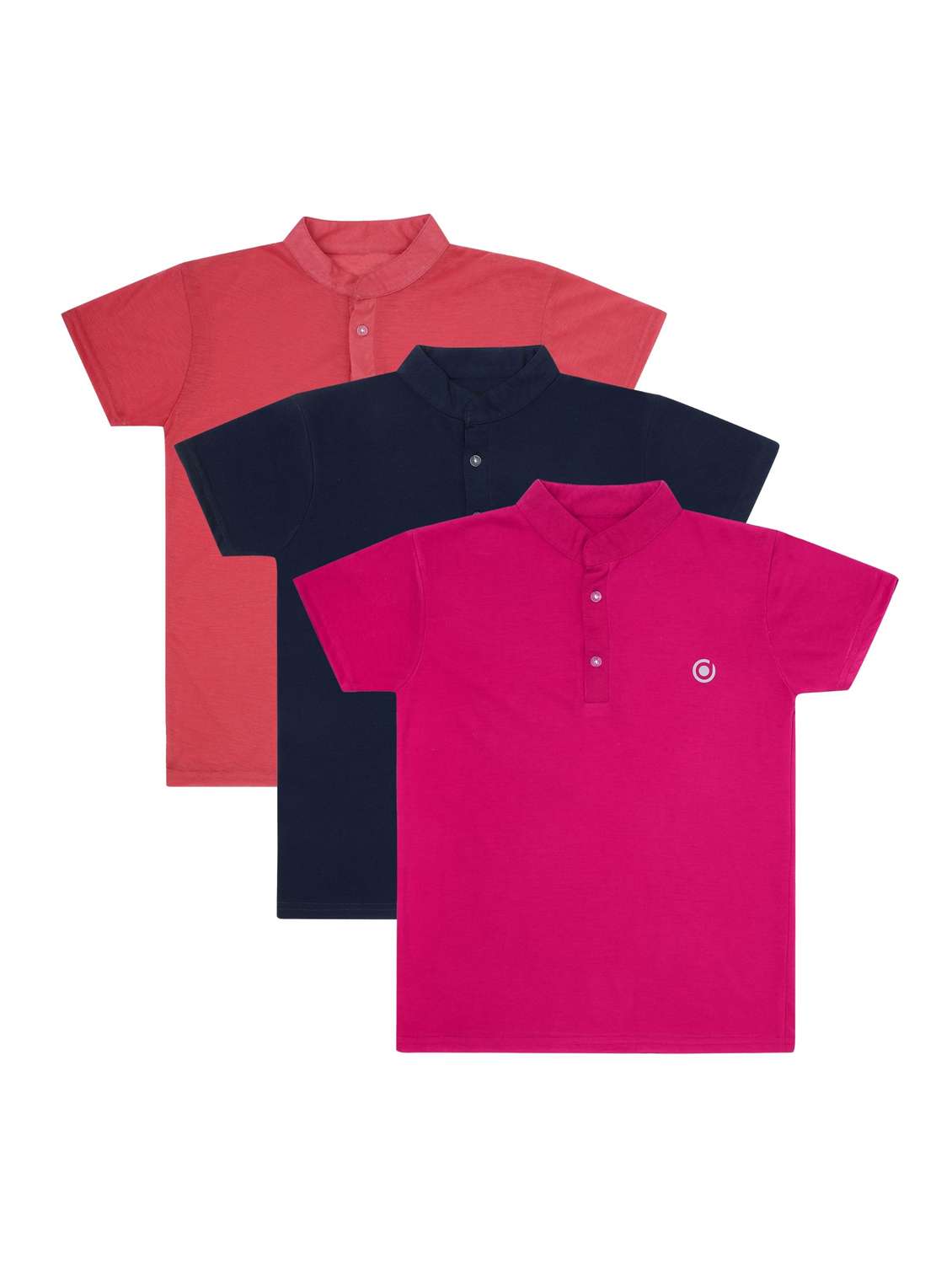 boys pack of 3 plain mandarin neck short sleeve t-shirts