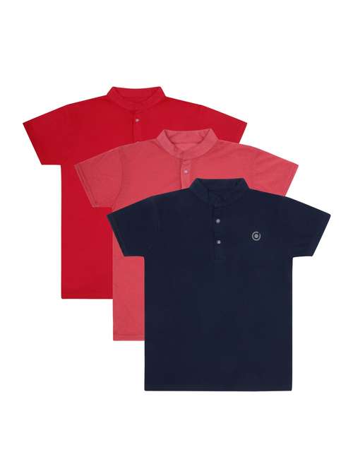 boys pack of 3 plain mandarin neck short sleeve t-shirts