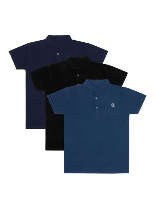 boys pack of 3 plain mandarin neck short sleeve t-shirts