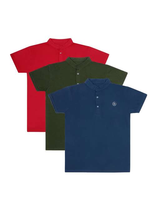 boys pack of 3 plain mandarin neck short sleeve t-shirts
