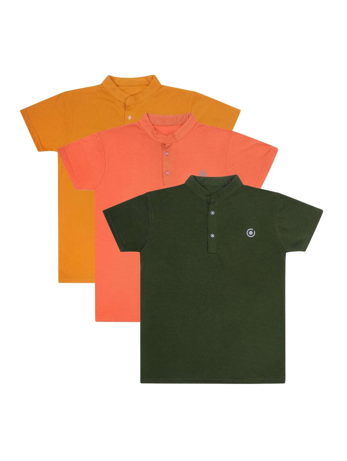 boys pack of 3 plain mandarin neck short sleeve t-shirts