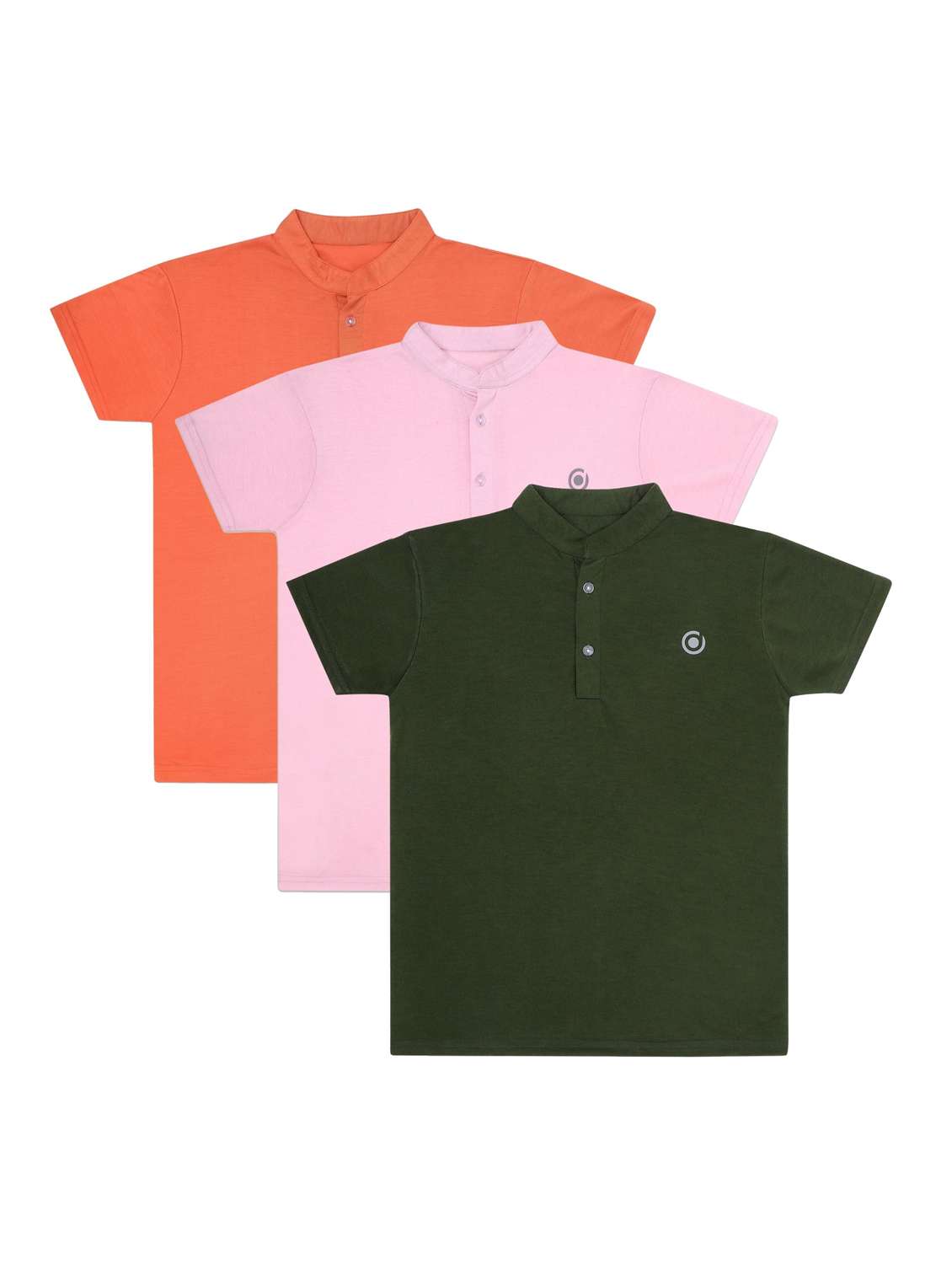 boys pack of 3 plain mandarin neck short sleeve t-shirts