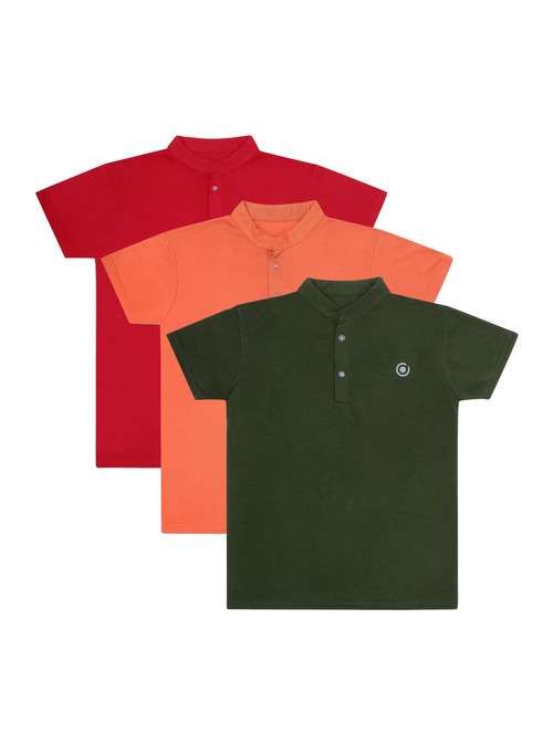 boys pack of 3 plain mandarin neck short sleeve t-shirts