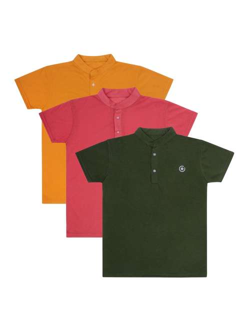 boys pack of 3 plain mandarin neck short sleeve t-shirts