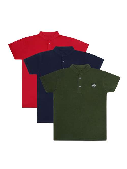 boys pack of 3 plain mandarin neck short sleeve t-shirts