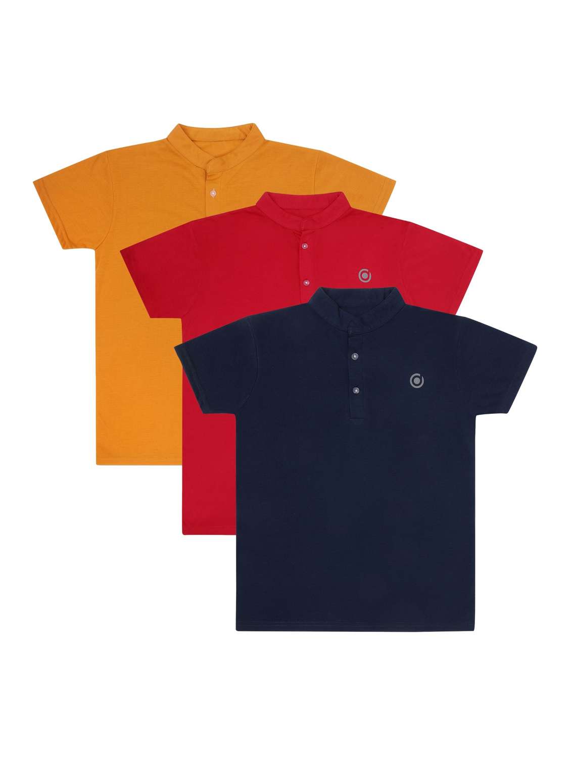 boys pack of 3 plain mandarin neck short sleeve t-shirts