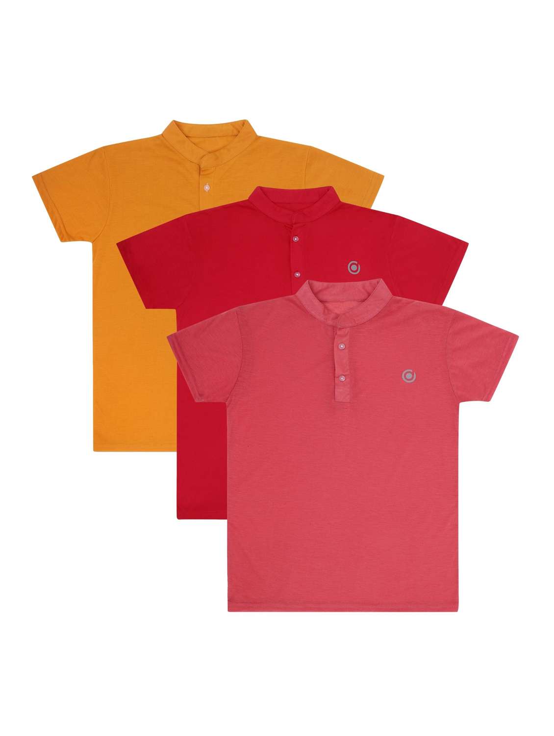 boys pack of 3 plain mandarin neck short sleeve t-shirts