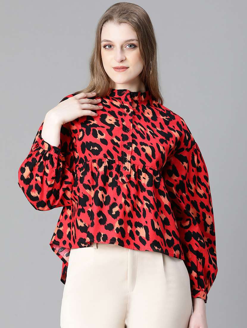 - » women red animal printed regular top