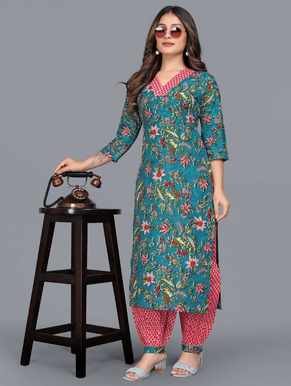 women v neck kurta salwar set