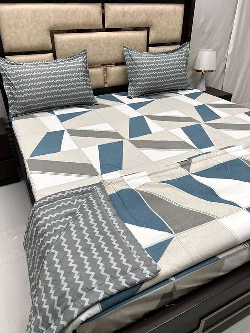 printed tc fitted king-sized bedsheet with 2 pillow covers