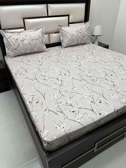 printed tc fitted king-sized bedsheet with elastic and 2 pillow covers