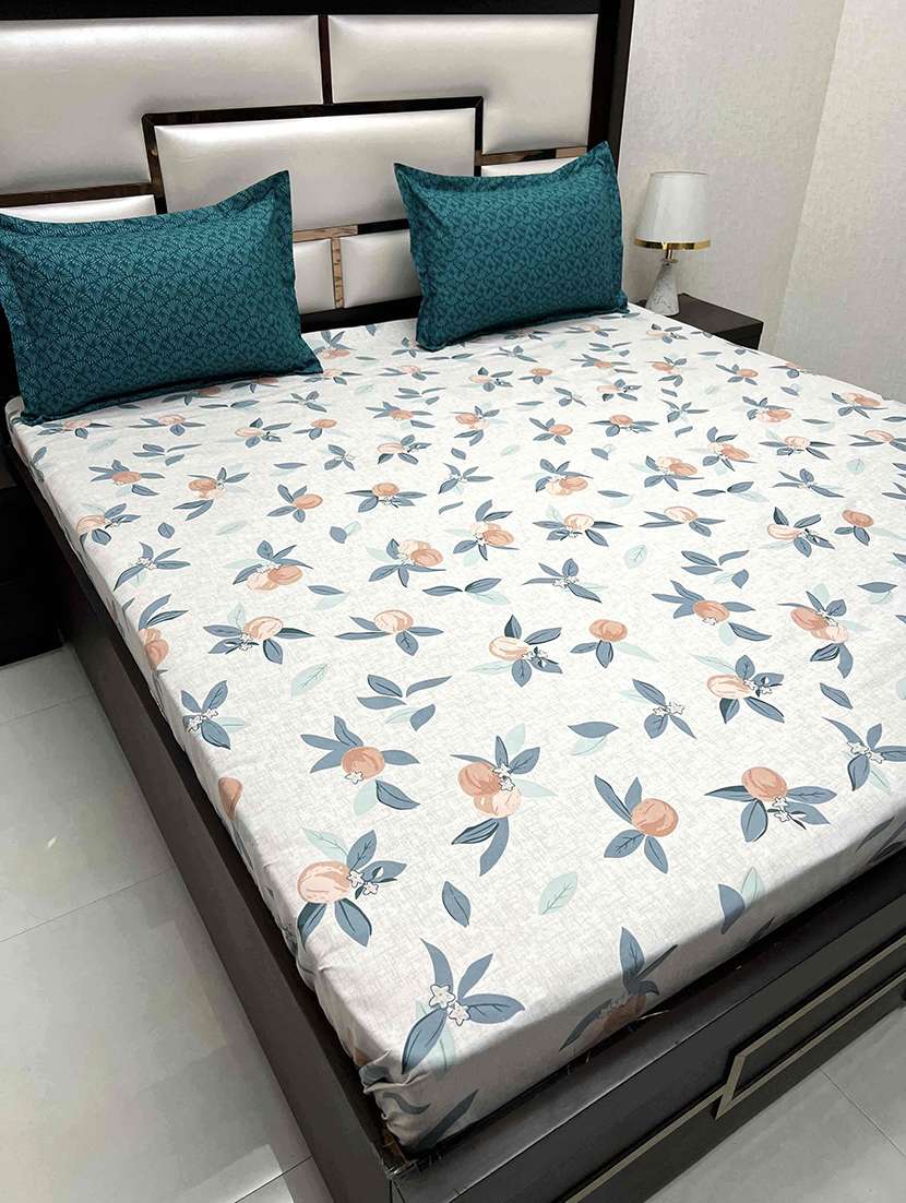 printed tc fitted king-sized bedsheet with elastic and 2 pillow covers