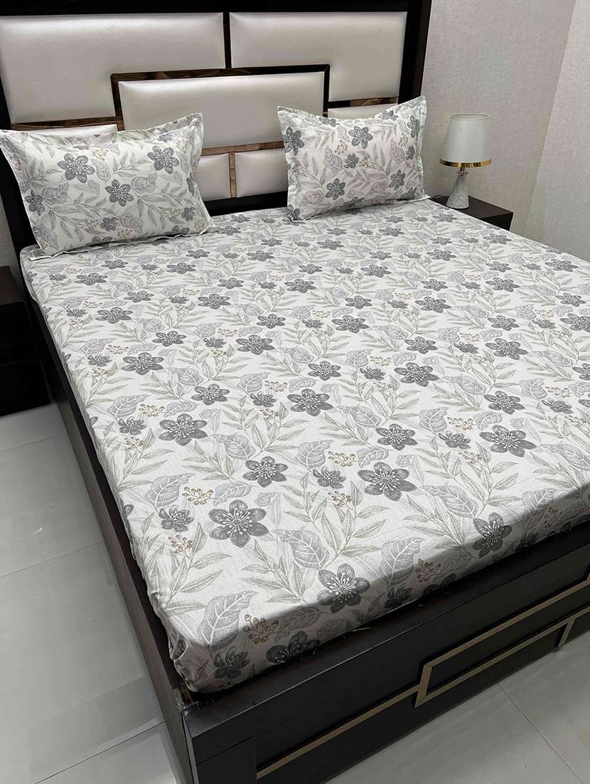 - » printed tc fitted king-sized bedsheet with elastic and 2 pillow covers