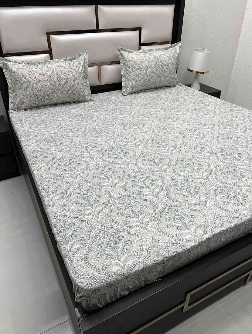 printed tc fitted king-sized bedsheet with 2 pillow covers