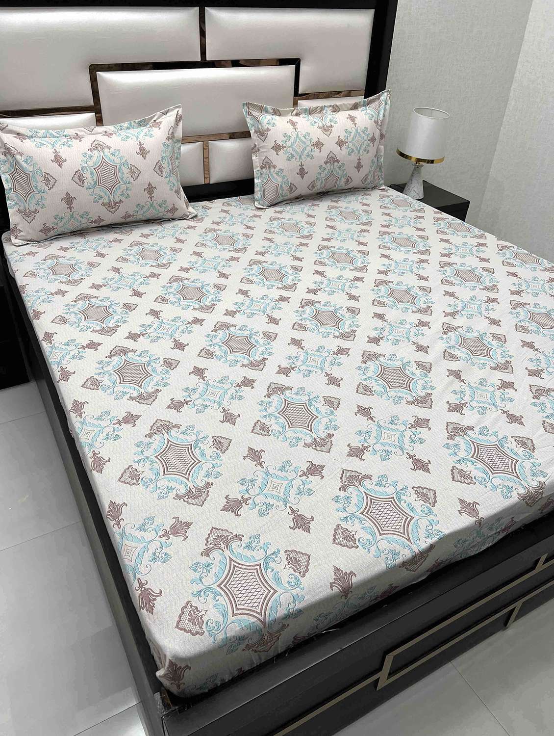 printed tc fitted king-sized bedsheet with 2 pillow covers