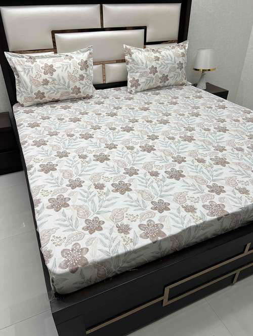 printed tc fitted king-sized bedsheet with 2 pillow covers