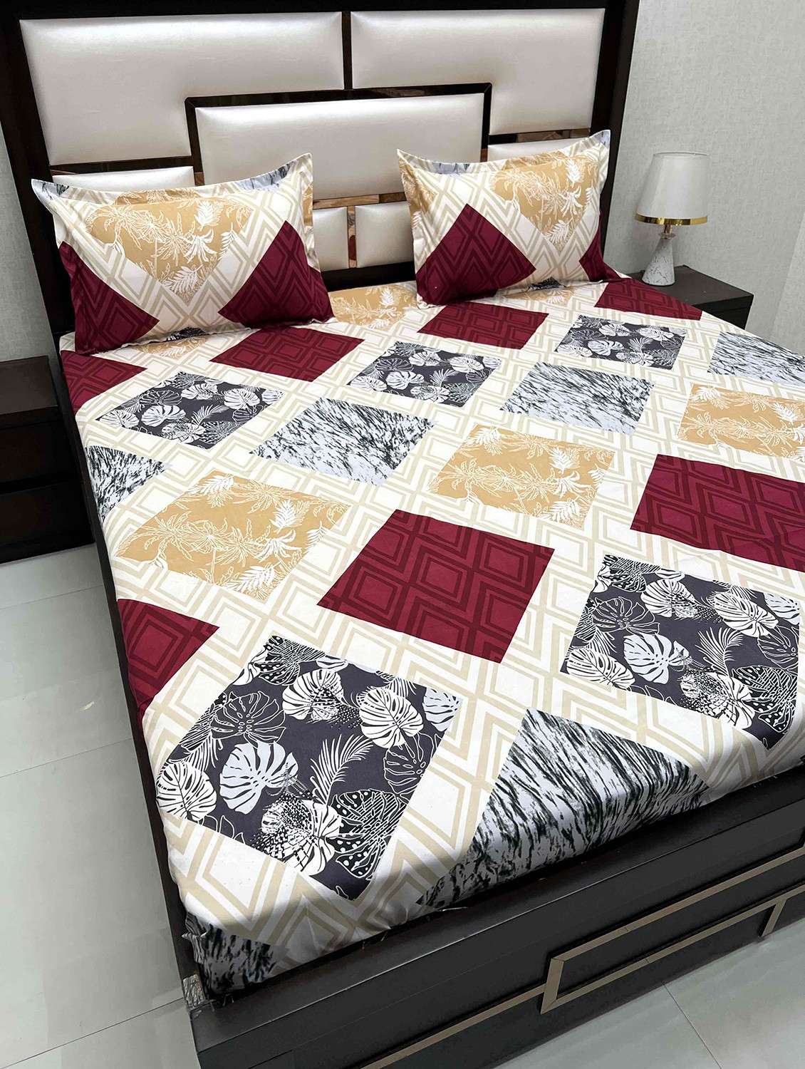 printed tc fitted king-sized bedsheet with 2 pillow covers