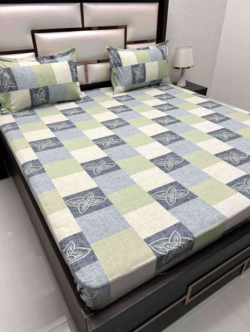 printed tc fitted king-sized bedsheet with 2 pillow covers