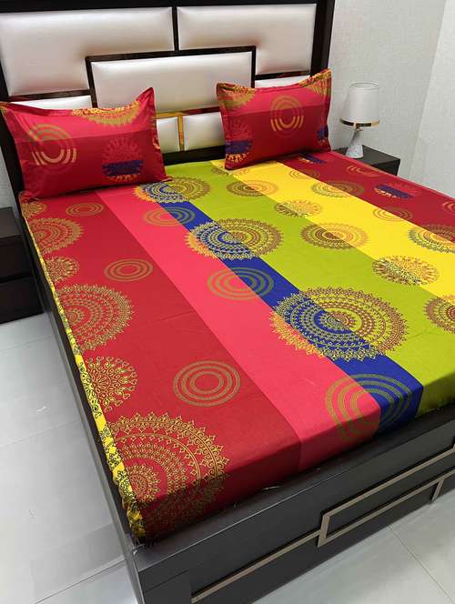 printed tc fitted king-sized bedsheet with 2 pillow covers
