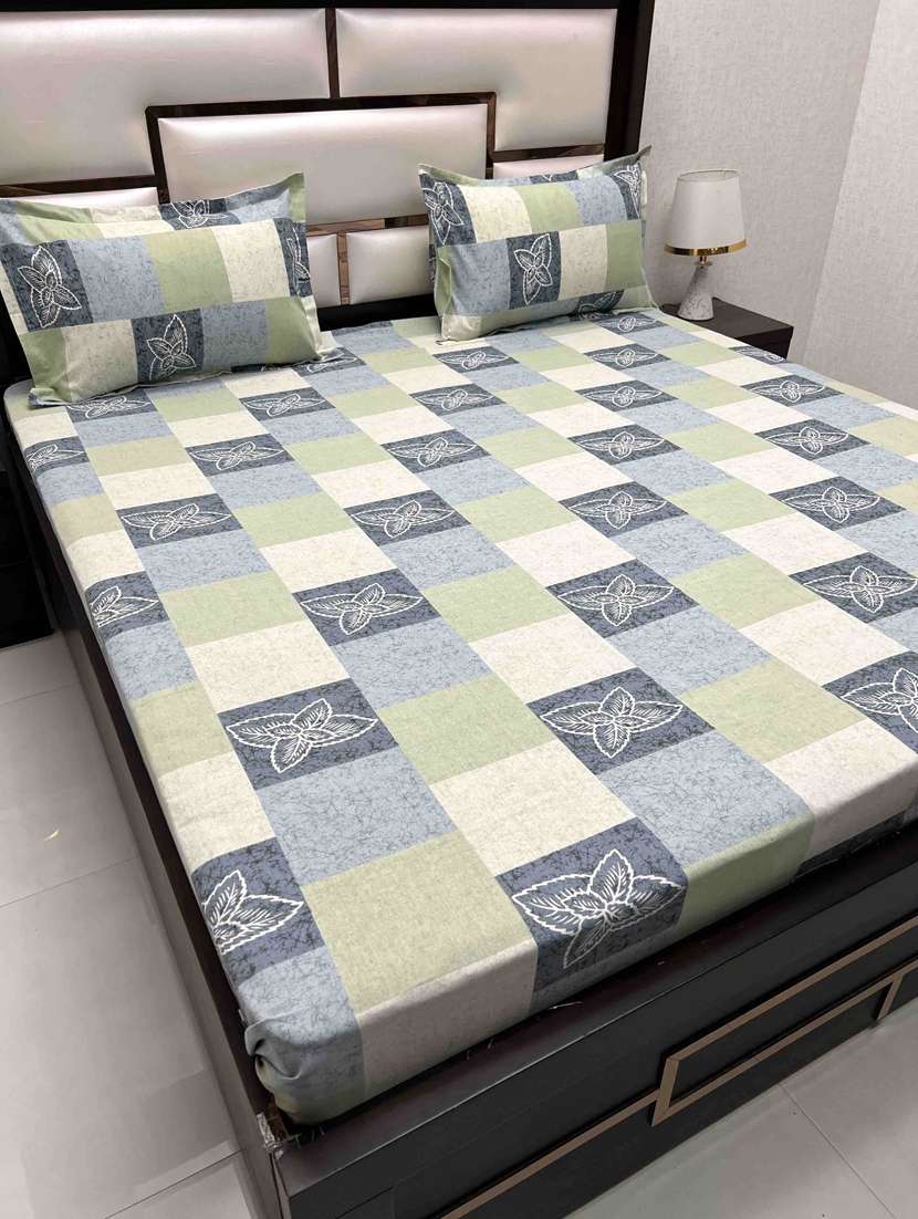 printed tc fitted king-sized bedsheet with 2 pillow covers