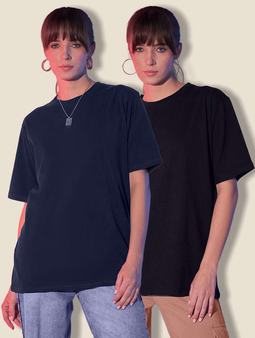 women pack of 2 solid short sleeve oversized t-shirt - 21946848 - Very Small Image - 1