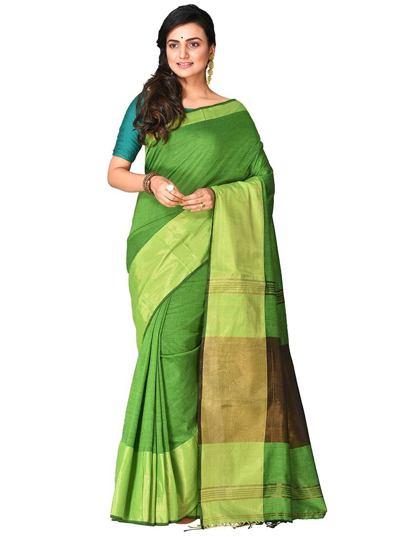 - » women green solid bordered saree with blouse