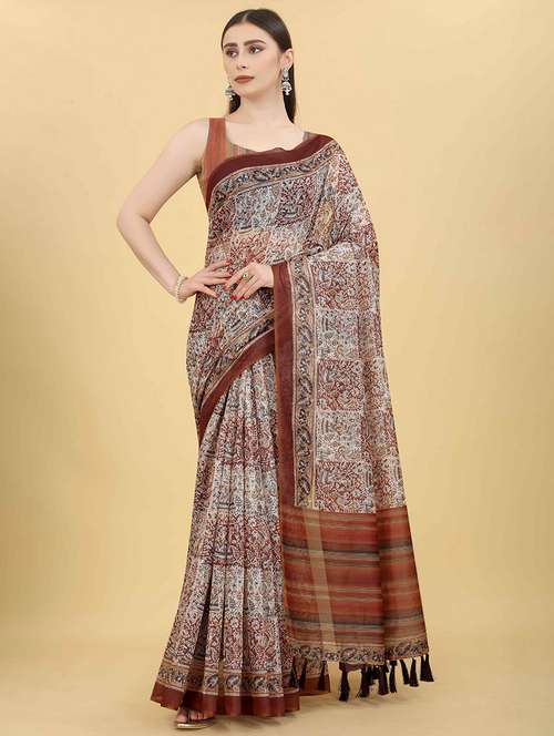 - » women brown printed saree