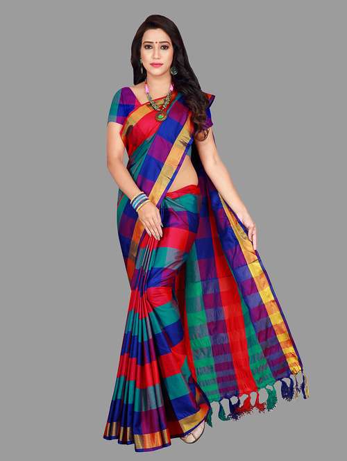 - » women's checks multi colored saree with blouse