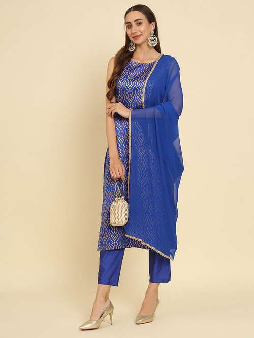 - Find gorgeous sets of ethnic wears in trending designs in blue colors suitable for festive wear of occasions.
