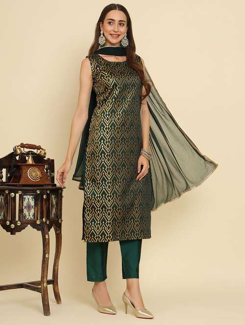 - » women self design sleeveless kurta pant with dupatta set