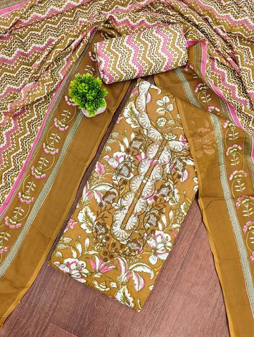 - Look ultra gorgeous in unstitched suits from Manvaa and grab these beautiful suits in brown colour.