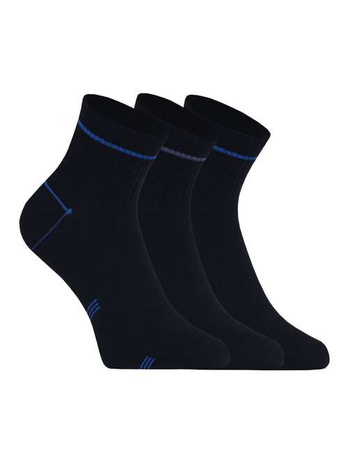 Package Contents: Men's Multi Striped Socks – 3 Pair I Material: Combed Cotton I Color: Black I Size: Free Size I Length: Ankle I Age Range: Adult I Pattern: Plain Lining I Anti-foul and anti-bacterial features for a clean and hygienic wearing experience I making them ideal to be worn during exercise, high-activity sports, aerobics, daily gym sessions, running, or as daily use socks.
