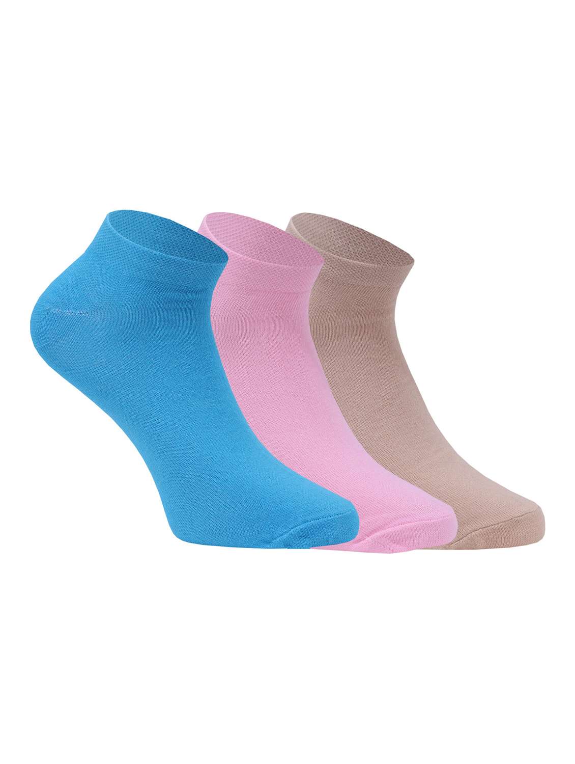 Package Contents: Women's Socks – 3 Pair I Material: 80% cotton, 3% elastin, 3% nylon, 14% Lycra I Color: Blue, Pink, and Skin I Size: Free Size I Length: Ankle I Age Range: Adult I Pattern: Plain I Anti-foul and anti-bacterial features for a clean and hygienic wearing experience I making them ideal to be worn during exercise, high-activity sports, aerobics, daily gym sessions, running, or as daily use socks.