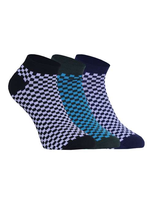 Package Contents: Men's Ankle Length Socks – 3 Pair I Material: Combed Cotton I Color: Black, Green, Blue, Purple, and Dark Grey I Size: Free Size I Length: Ankle I Age Range: Adult I Pattern: Checked I Anti-foul and anti-bacterial features for a clean and hygienic wearing experience I making them ideal to be worn during exercise, high-activity sports, aerobics, daily gym sessions, running, or as daily use socks.